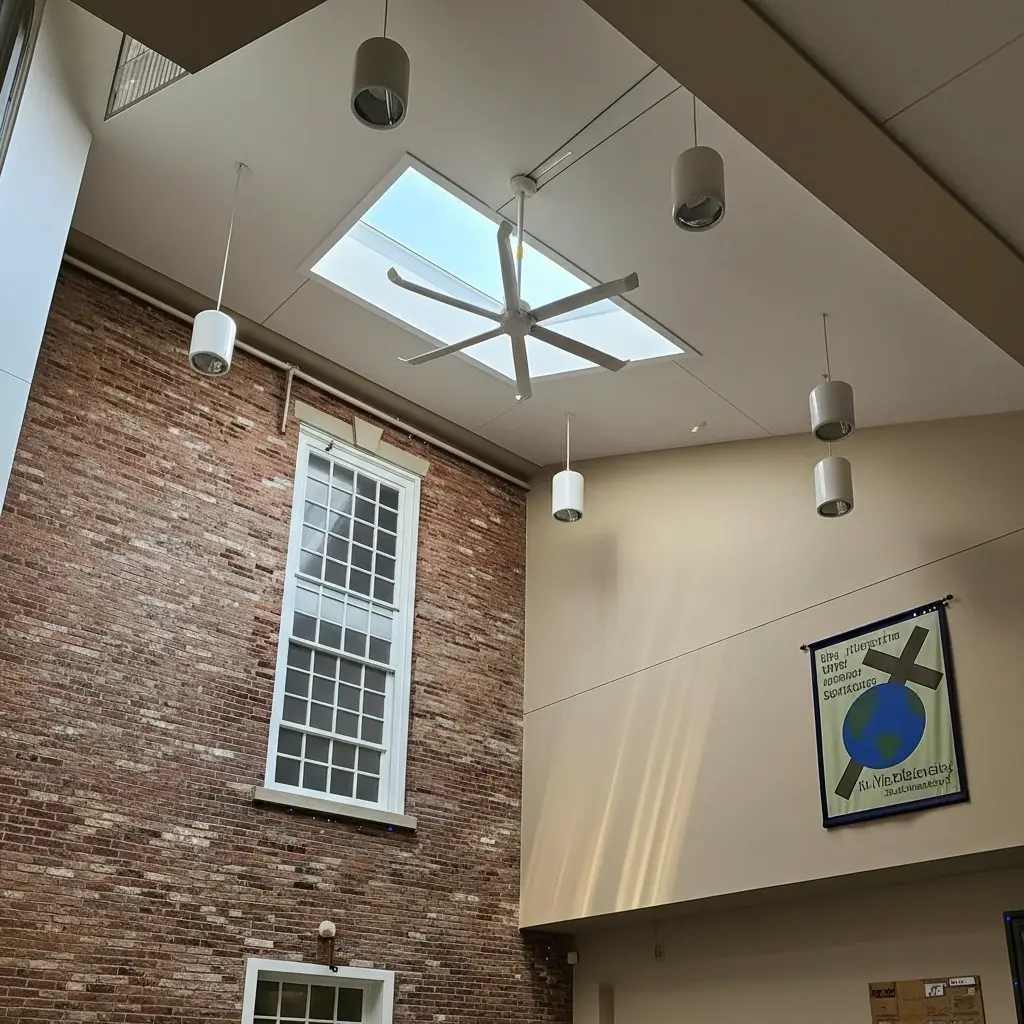 | Church / Auditorium | 8 000 – 30 000 sq ft | 16 – 20 ft | 2 ft/s | Silent operation and air mixing at height |